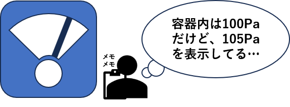 真空計の校正とは、基準となる圧力と真空計の表示がどれだけズレているかを確認することです。